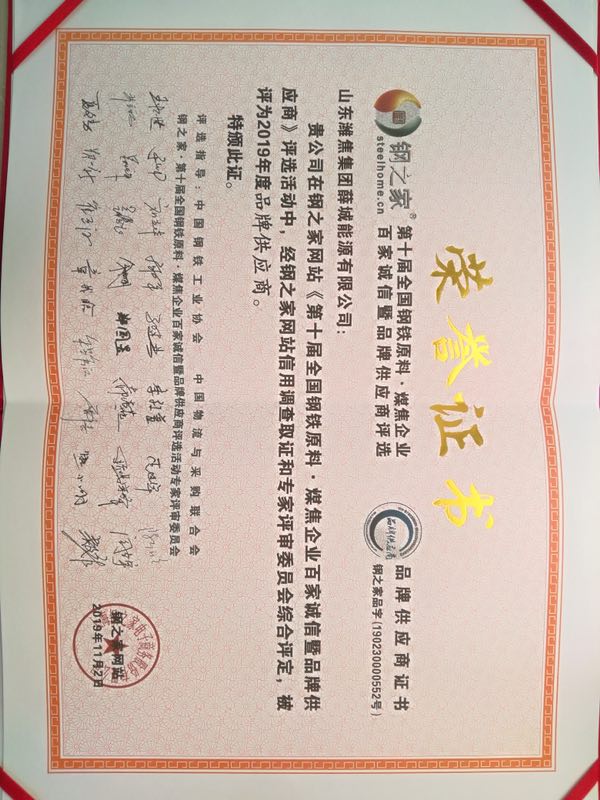 Honor Certificate of Brand Supplier